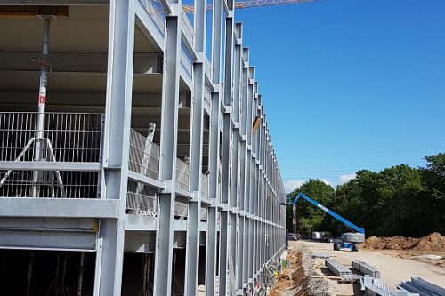 Some of the beams have also been mounted between axis 22 and 42 and we will be assembling everything on the 5th floor in week 20.
